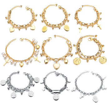 Phổ Biến Titan Thép Cô Gái Cây Chéo Sao Mặt Dây Chuyền Vòng Đeo Tay Hai Lớp Vàng Bạc Phụ Nữ Vòng Đeo Tay